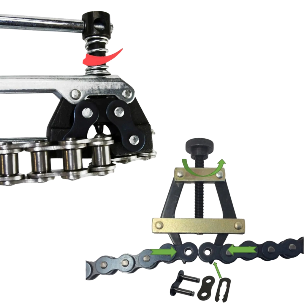O Extrator para Sacar Pino de Correntes Industriais ASA #60-100 é a ferramenta ideal para profissionais que precisam reparar, substituir ou ajustar correntes industriais com precisão e segurança. Projetado para facilitar a manutenção das correntes de rolo, ele permite tanto o corte no comprimento desejado quanto a conexão de correntes curtas ou quebradas, tudo sem afrouxar as montagens.